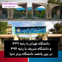 دانشگاه‌ تهران با رتبه ۴۳۱ و دانشگاه صنعتی شریف با رتبه ۴۹۶ در میان ۵۰۰ دانشگاه برتر دنیا قرار دارند.